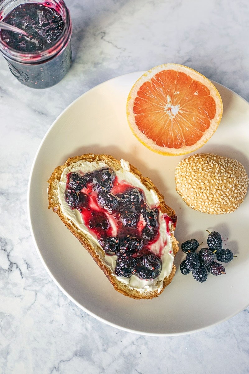 - Kết hợp với bánh mì: Phết một lớp mứt dâu tằm lên bánh mì nướng giòn, bạn sẽ có ngay bữa sáng nhanh gọn nhưng đầy đủ dinh dưỡng.