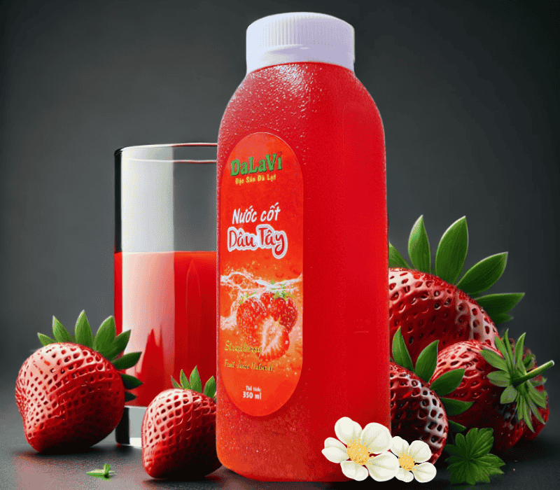 Nước cốt dâu tây của DaLaVi là lựa chọn hoàn hảo cho những ai yêu thích hương vị ngọt ngào, tươi mát của đặc sản Đà Lạt. Sản phẩm được chế biến từ những trái dâu tây tươi ngon nhất, thu hoạch trực tiếp tại các nông trại Lâm Đồng, nơi có khí hậu ôn hòa, đất đai màu mỡ giúp dâu tây phát triển tự nhiên và đạt chất lượng cao.